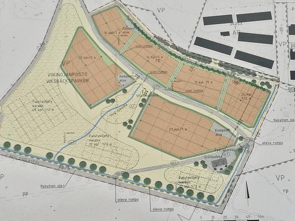 Uudella alueella on 81 aarin palstaa ja 24 puolen aarin palstaa, lisäksi 19 vesipistettä ja 3 kompostointialuetta puutarhajätteelle.